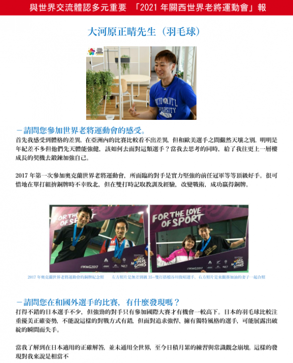 WMG2021 Kansai will also be a place to give back to friends all over the world. I am very happy to have the opportunity to say 'We have an international tournament in Japan.”