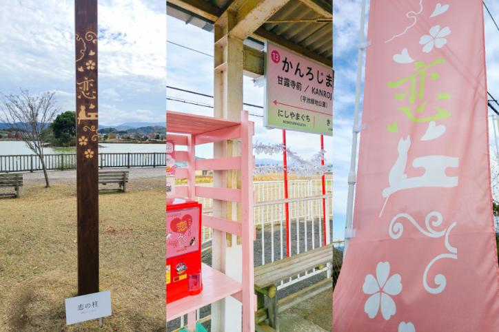 In “Hiraike ryokuchi” park near the temple, there is the biggest pond in Wakayama Prefecture. You can find the symbol of this holy place of love, “Pillar of love”. (You can see this throughout the year.)