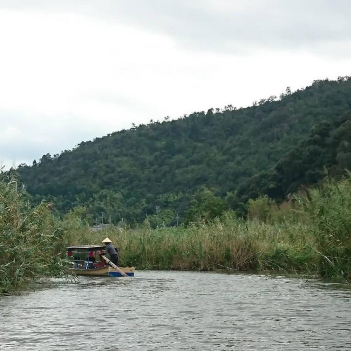 船頭さんが手漕ぎする和船は、静かにゆっくりと進む。歩くスピードより遅いくらいだ。