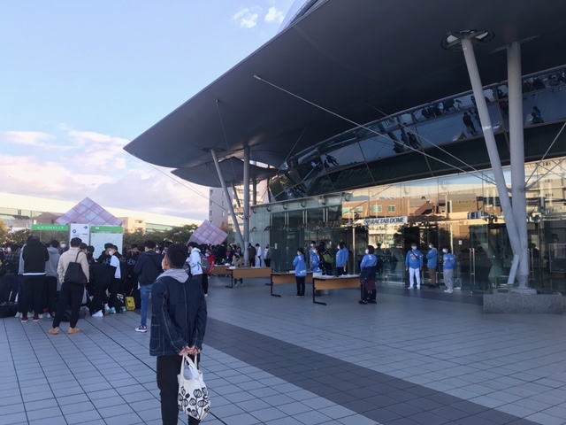 皆さん早朝から並んでいたためか、体温が低めに出ていました。寒い中お待たせしたにも関わらずクレームひとつなく、誘導に従って順番に検温→入場と進んでくださいます。ご協力に感謝!