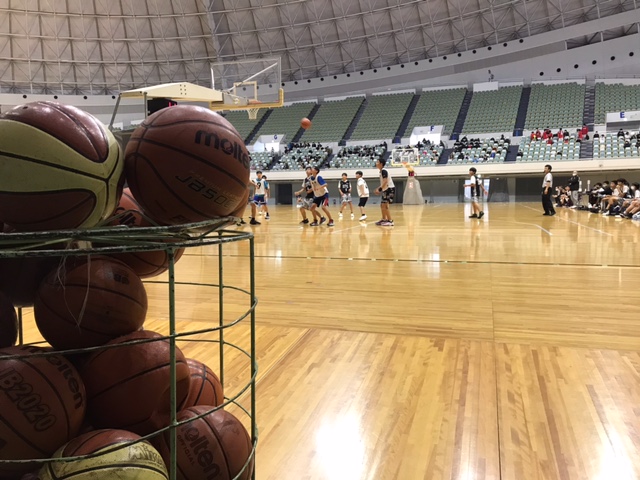 ダムダムとボールをドリブルする音や、キュッキュッとバスケットシューズが床とすれる音。既に大会は始まっているようです。バスケットってこんな音だったなぁと、学生時代を思い出し、思わず胸が熱くなります。