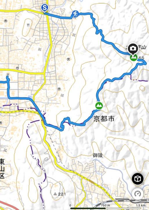 ちなみにこの日はYAMAPアプリを使っていましたが、時間3時間40分、距離9.7キロ、上り477メートル、下り507メートル。今、京都の山でも、倒木などで荒れているところも多くて、道迷いが心配だったり、クマやイノシシに遭遇しそうでこわかったりしますが、大文字山は地図読みにも登山技術にも自信のない私がひとりでも行けるところ。気軽に行けるわりに絶景や寄り道スポットなどのご褒美が大きいです。