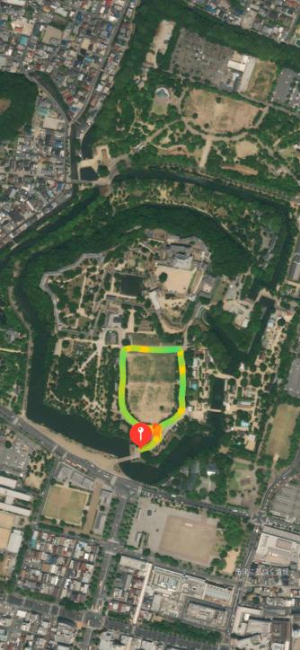 動画の後半ではさらに、「姫路城マラソン」のゴール地点である、姫路城内の三の丸広場1周、約500mのコースを撮影。※GPSで計測