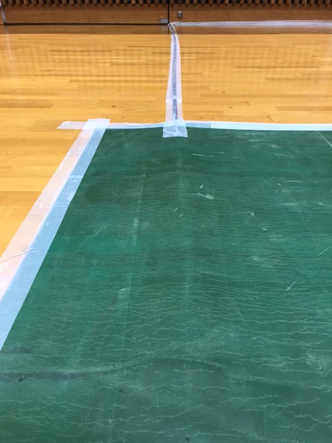 選手が足をひっかけて怪我をしないように、コードやシートは養生テープで固定。このあたりはボランティア自己判断で行います。
