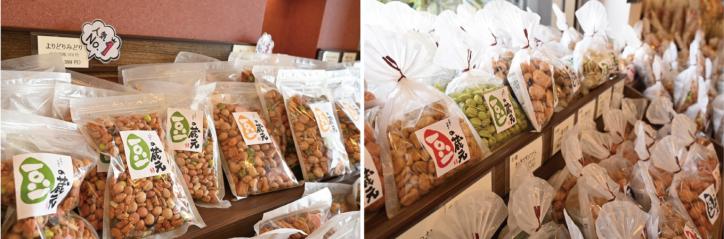 飛び抜けて人気があるのは、先代が考えた豆菓子“いろどりみどり”!私のお気に入りはワサビの豆!(わさびソフト:お酒を飲む人も飲まない人もきっと好きになるお菓子です)
