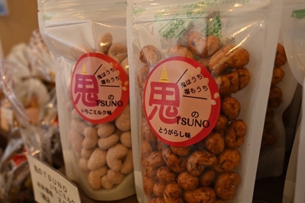 こんな商品もあるんです。河内長野が舞台となった映画『鬼ガール』の豆菓子!その名も『鬼は〜うち、福も〜うち』!