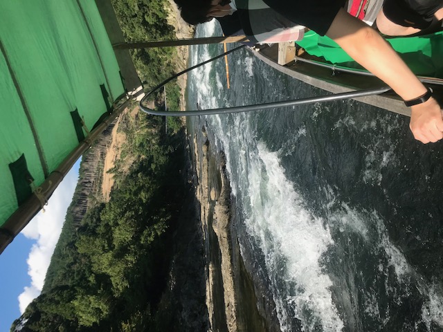 急流ポイントでは、大量の水が全身にかかり、ボートのロープを握っていないと振り落とされそうなくらいボートは大きく揺れて、川の中(=水の壁)に向かって突っ込んでいく感覚でスリル&迫力満点で思わず大声を上げてしまっていました…笑