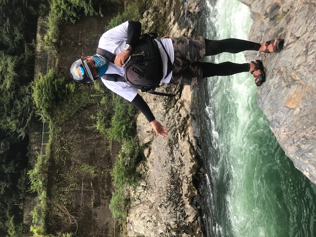 最初は引き気味だった姿勢も、いくつかの急流ポイントをこなす内にドンドン体が前のめりに。なんならボートから体がはみ出ているくらい攻めた姿勢になっていました(笑)