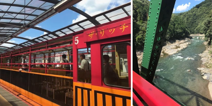 保津川下りの乗船場に向かうにはサクッとJRで行けますが、やはりここは自然の美しさを十二分に味わうために、トロッコ列車と京馬車を使って亀岡に。
