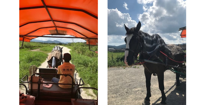 トロッコ亀岡駅を下車して、オス5歳のアジルが引っ張ってくれる京馬車にライドオン!