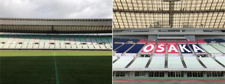 ピッチは昔と同じくよく整備され、緑が鮮やかでした。メインスタンドのOSAKAの文字は昔は無かったように思います。