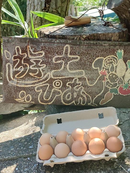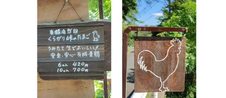暗峠から奈良側へ下った道沿いに、有精卵が無人販売されています。これは遊土びあさんで育てられた卵で、数が少ないため買えた日はラッキーです。