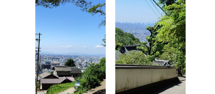 登り始めてまもない地点からでも振り返ると東大阪市が一望でき、こんなに登ったのかと励まされます。