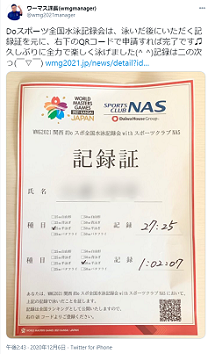 ワールドマスターズゲームズ(WMG)2021関西組織委員会は、大和ハウスグループのスポーツクラブNAS株式会社とコラボレーションし、オンラインを活用し一人でも参加できるスポーツ大会「#Doスポ 全国水泳記録会」を2020年11月14日(土)から12月20日(日)まで開催しました。