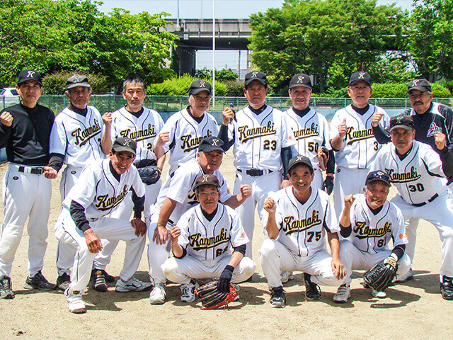 平均年齢66歳のチームは休憩中、木陰で仲間と談笑していた。激動の時代を駆け抜け定年まで勤め上げた〝猛者〟が、各々をリスペクトしながら白い歯を見せる。職場を離れ、役職や利害関係の絡まない関係は、学生時代の友人との接し方に似ていた。持病のあるメンバーも、お互いを励まし合い、笑いながら仲間との時間を楽しんでいる。「上牧町をソフトボールの町に!」の合言葉で結束するメンバーの想いは、甲子園を目指す高校球児のように純粋だった。